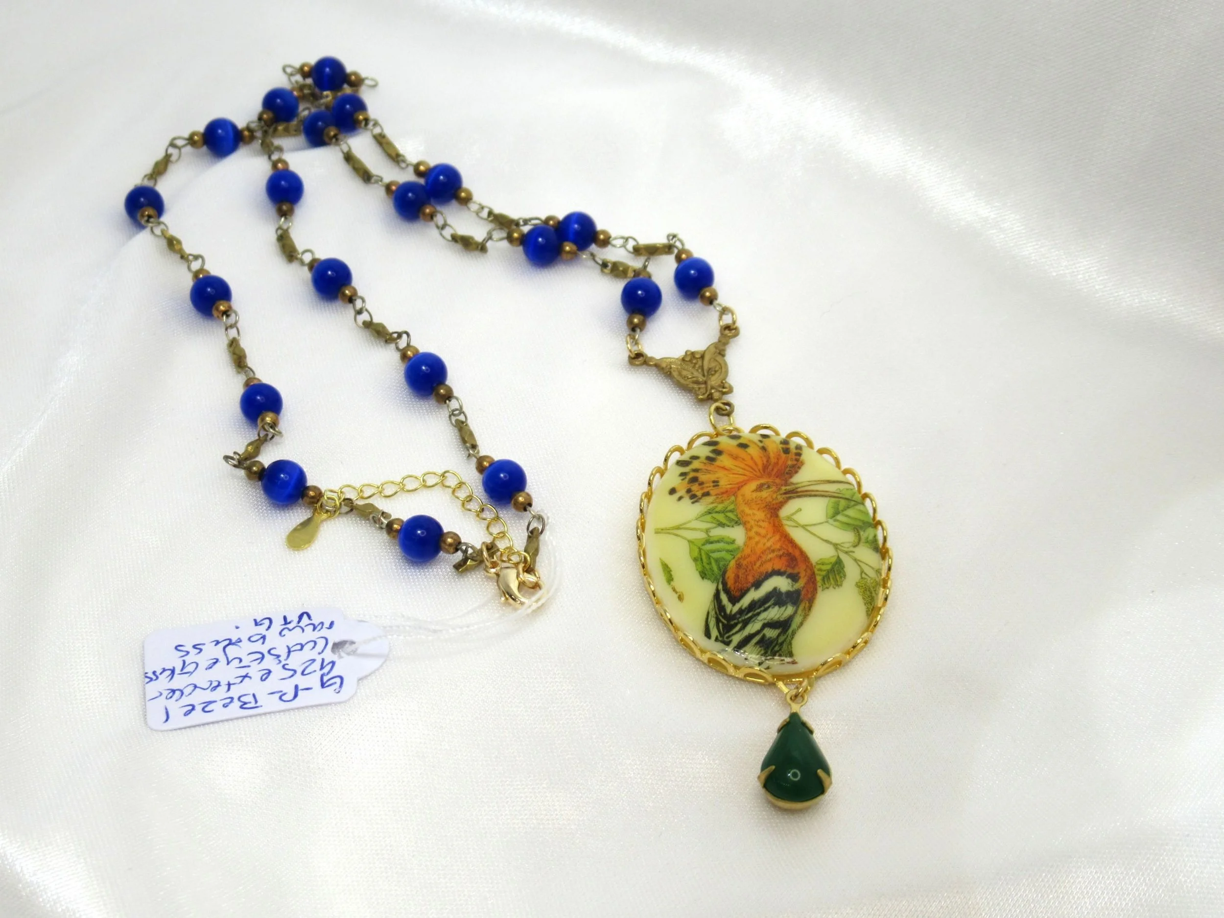 The pendant necklace is new and unused, with a vintage cameo, glass stone and glass beads.