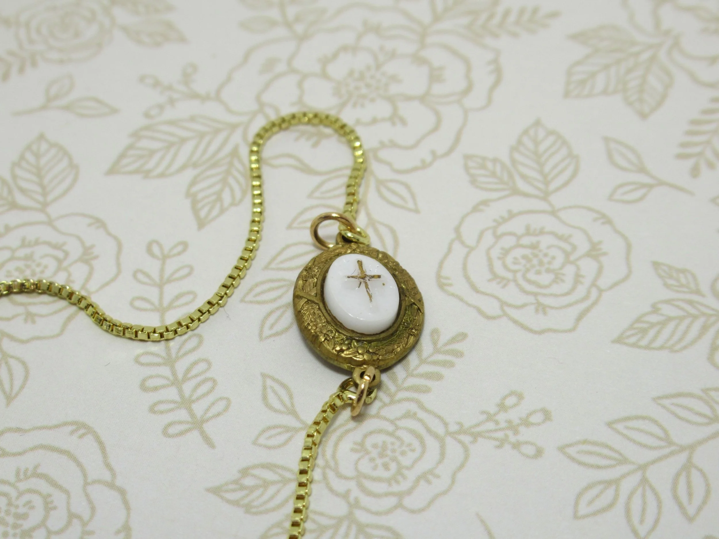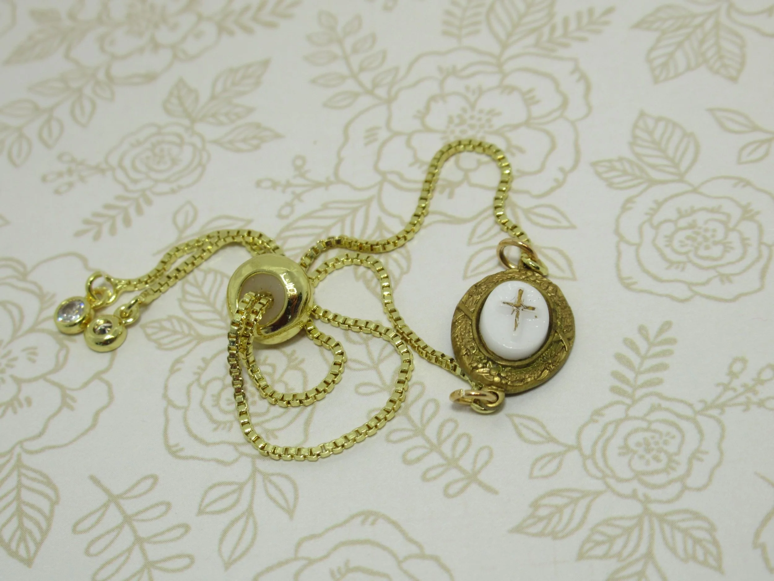 The bracelet cuff is new, unused, with a vintage glass cabochon.