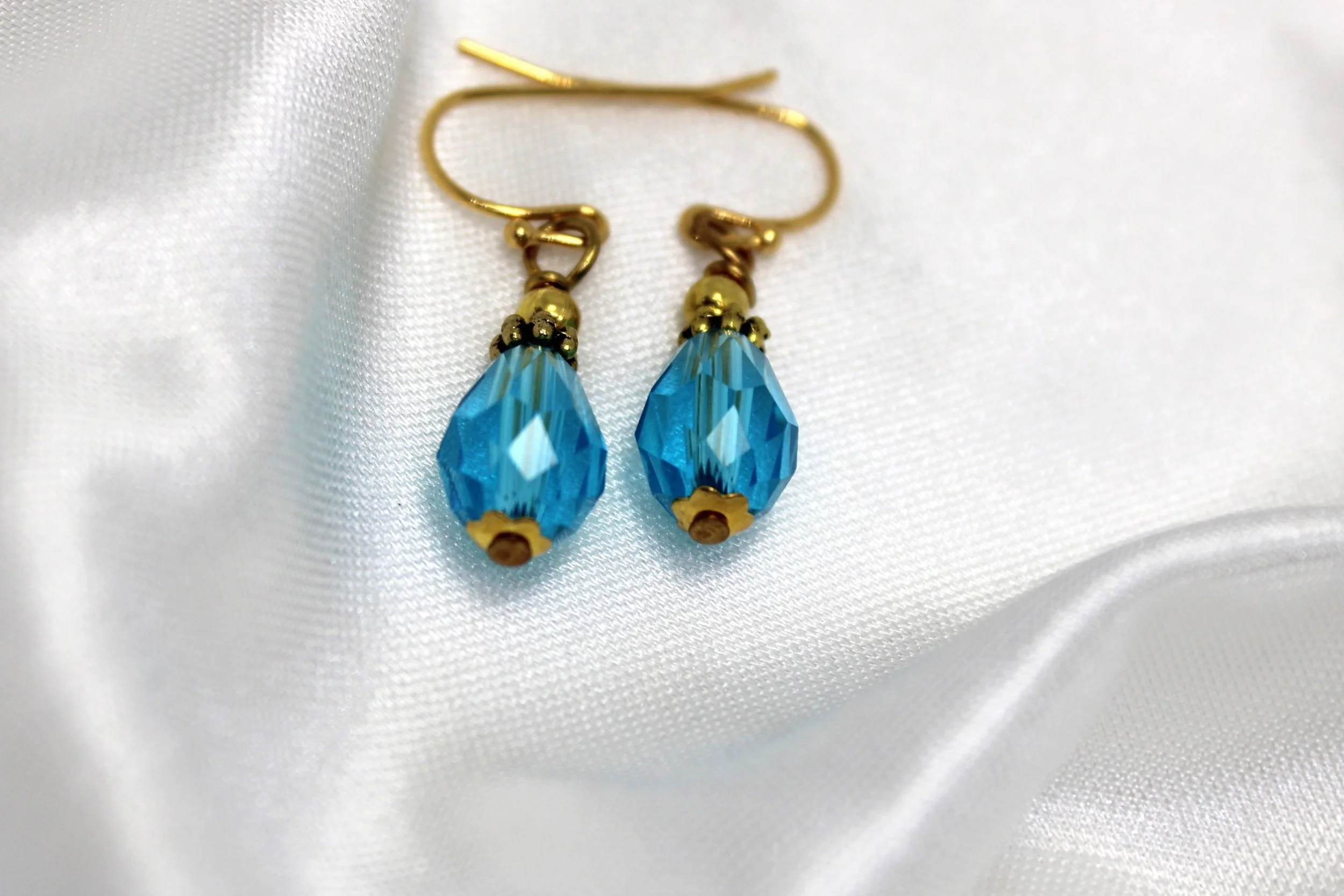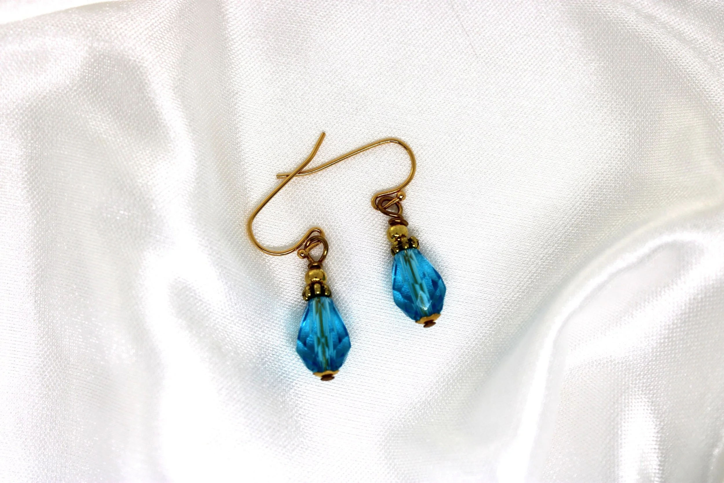 These beautiful, petite drop earrings feature vintage West Germany pink glass cabochon stones. The earring stones are set in a closed-back brass pronged bezel and showcase a pretty teardrop dangle design with a Victorian Bohemian appeal. The earrings are attached to petite gold-plated, brass solid French ear hook wires which are hypoallergenic and free from lead and nickel, making them suitable for sensitive and pierced ears. Additionally, these earrings are lightweight and comfortable to wear.