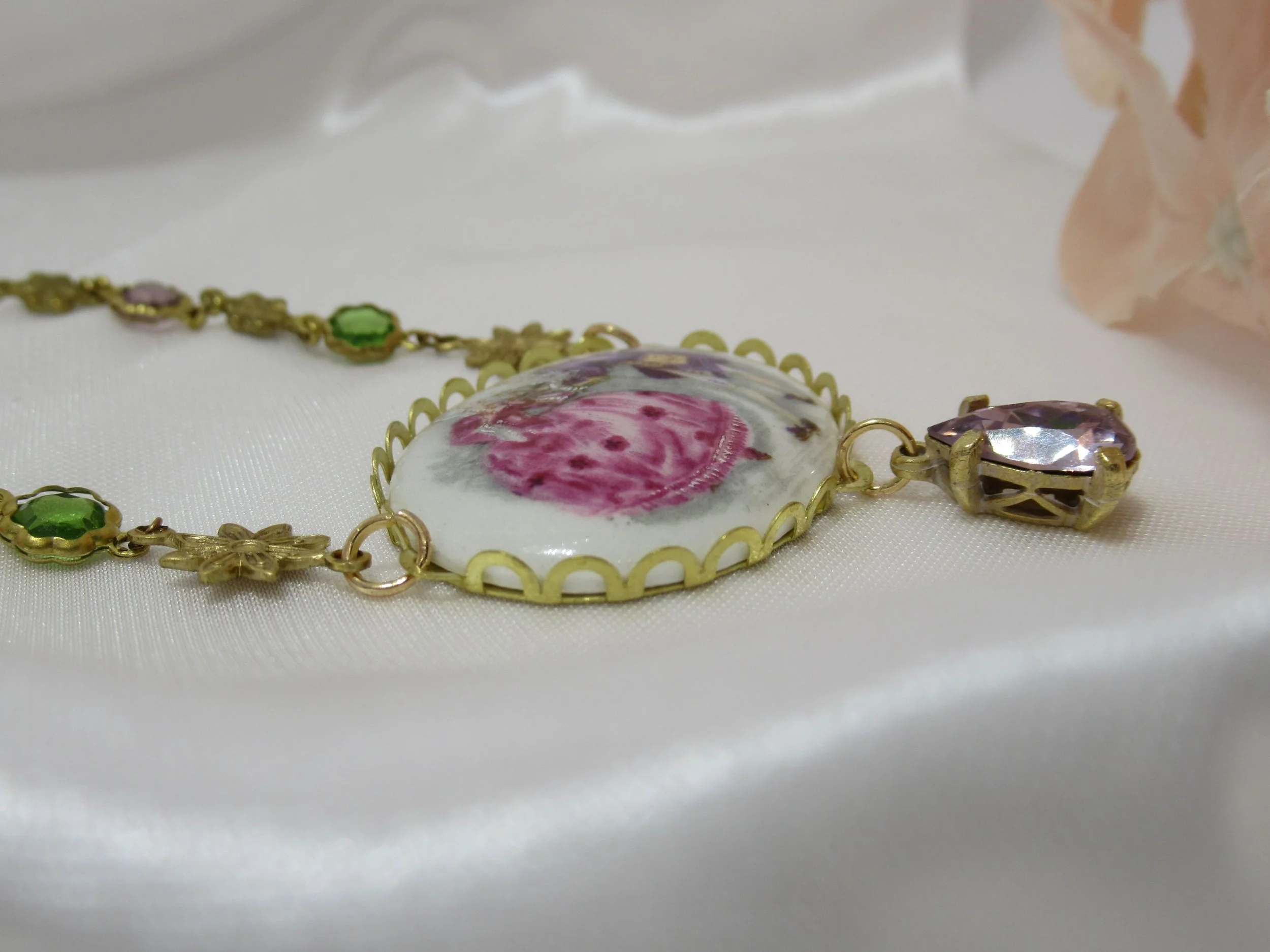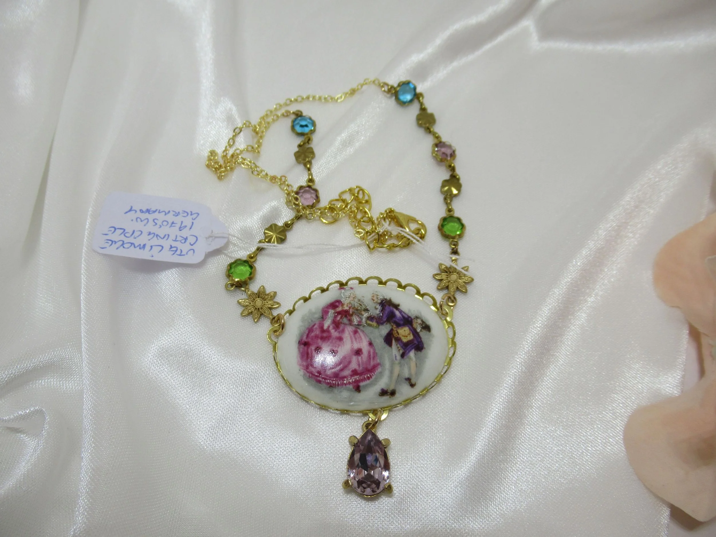 The necklace pendant and chain are new and unused, with a vintage cameo.