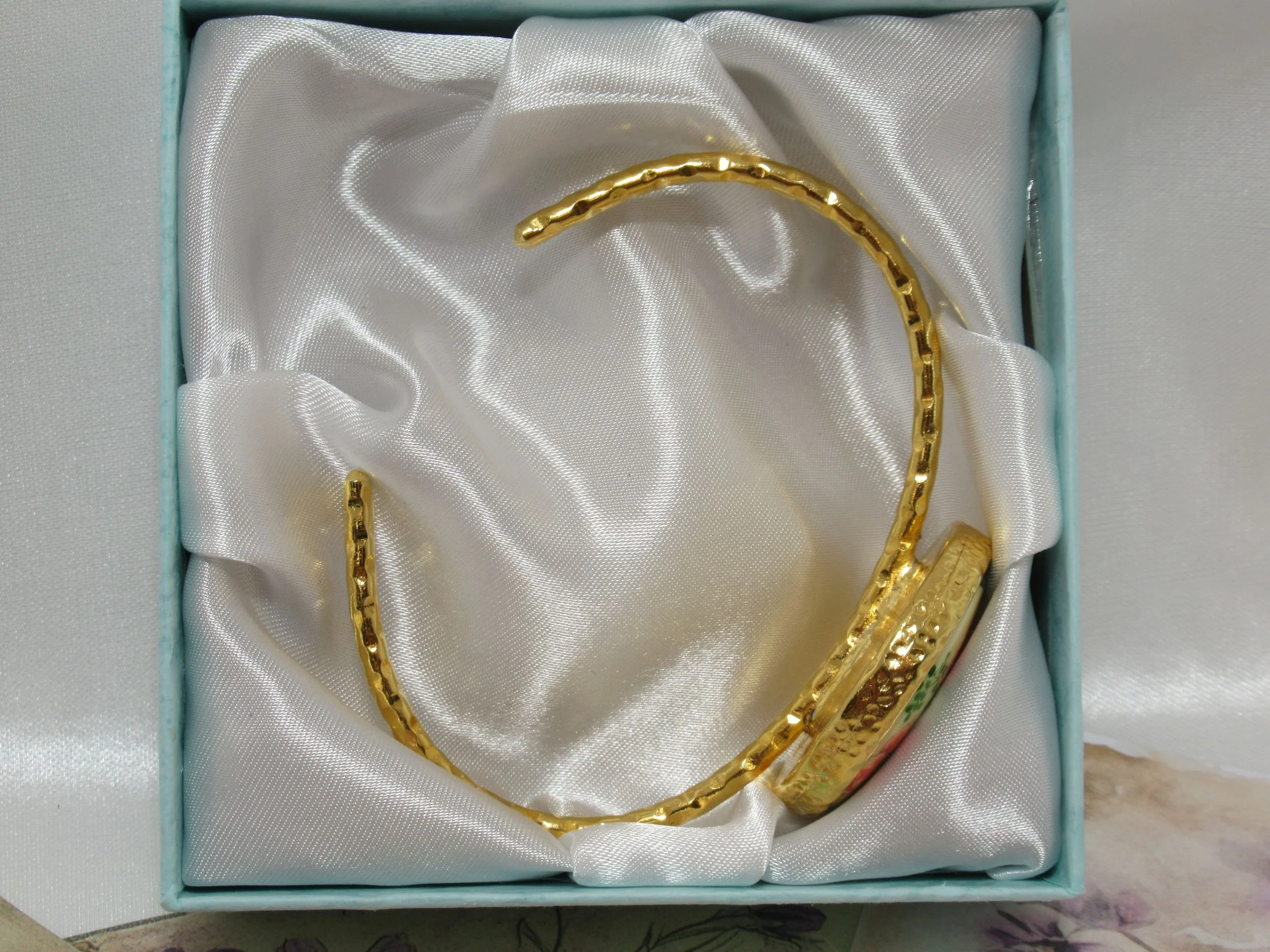 The bracelet cuff is new and unused, with a vintage cabochon.