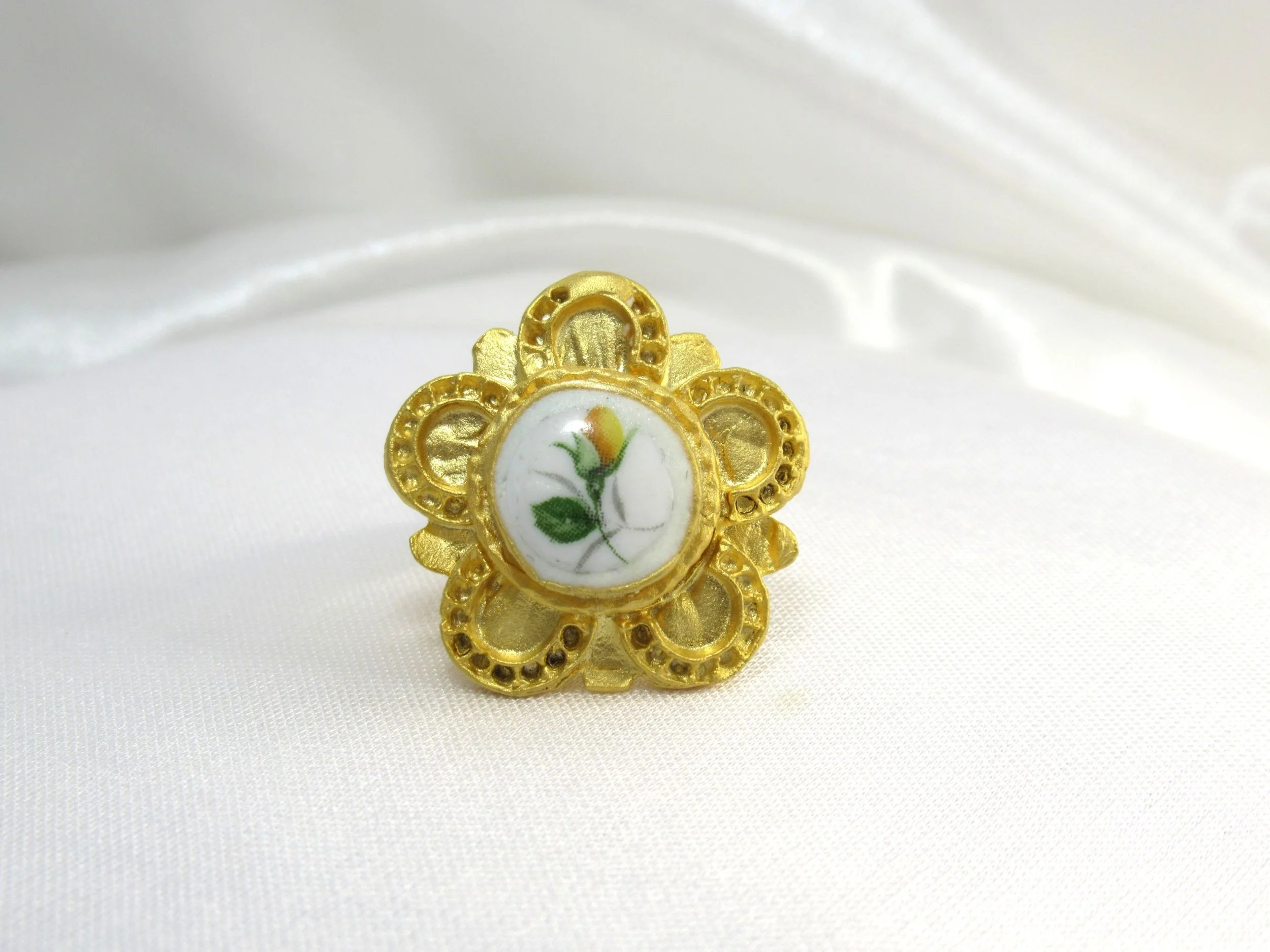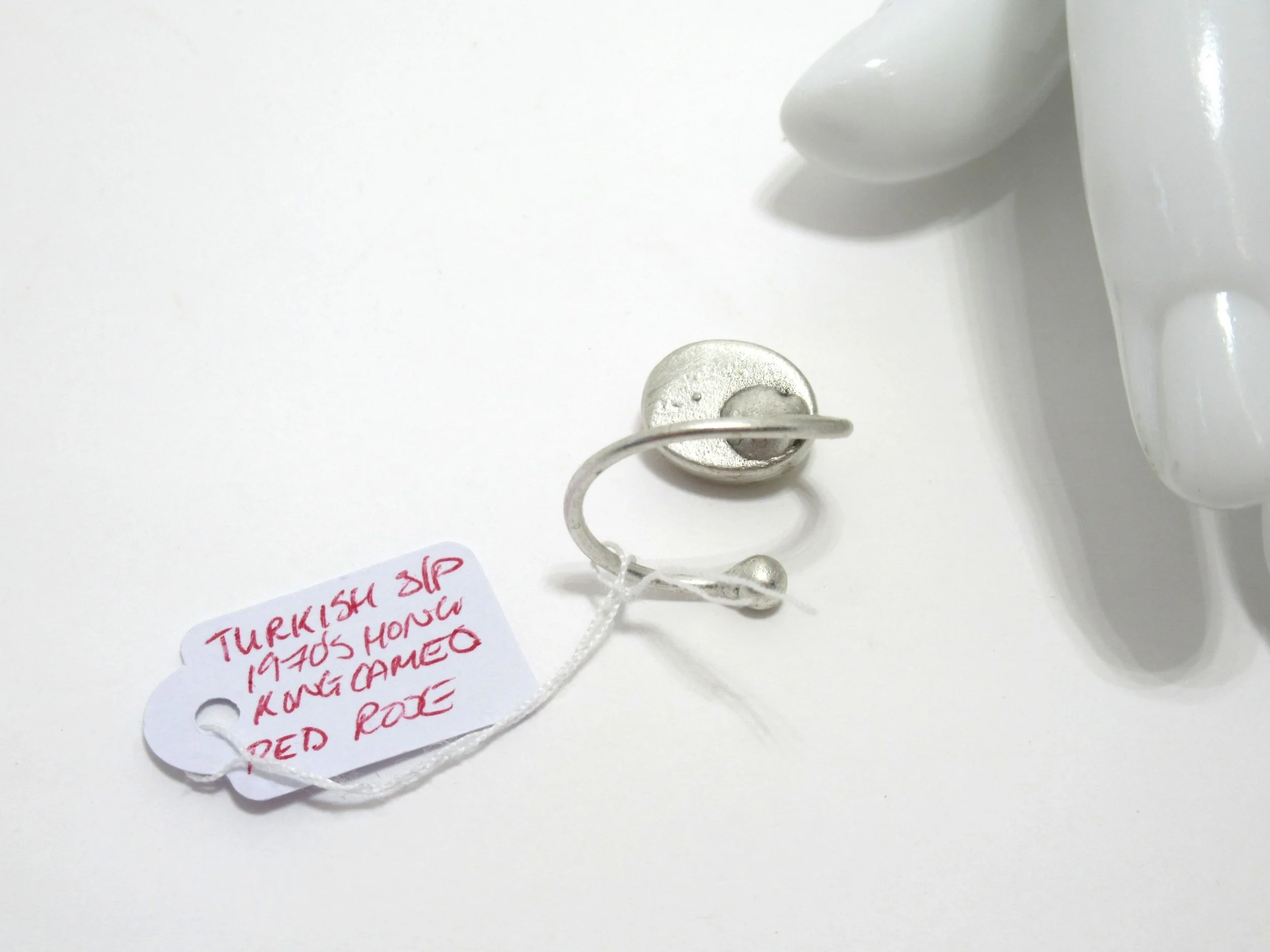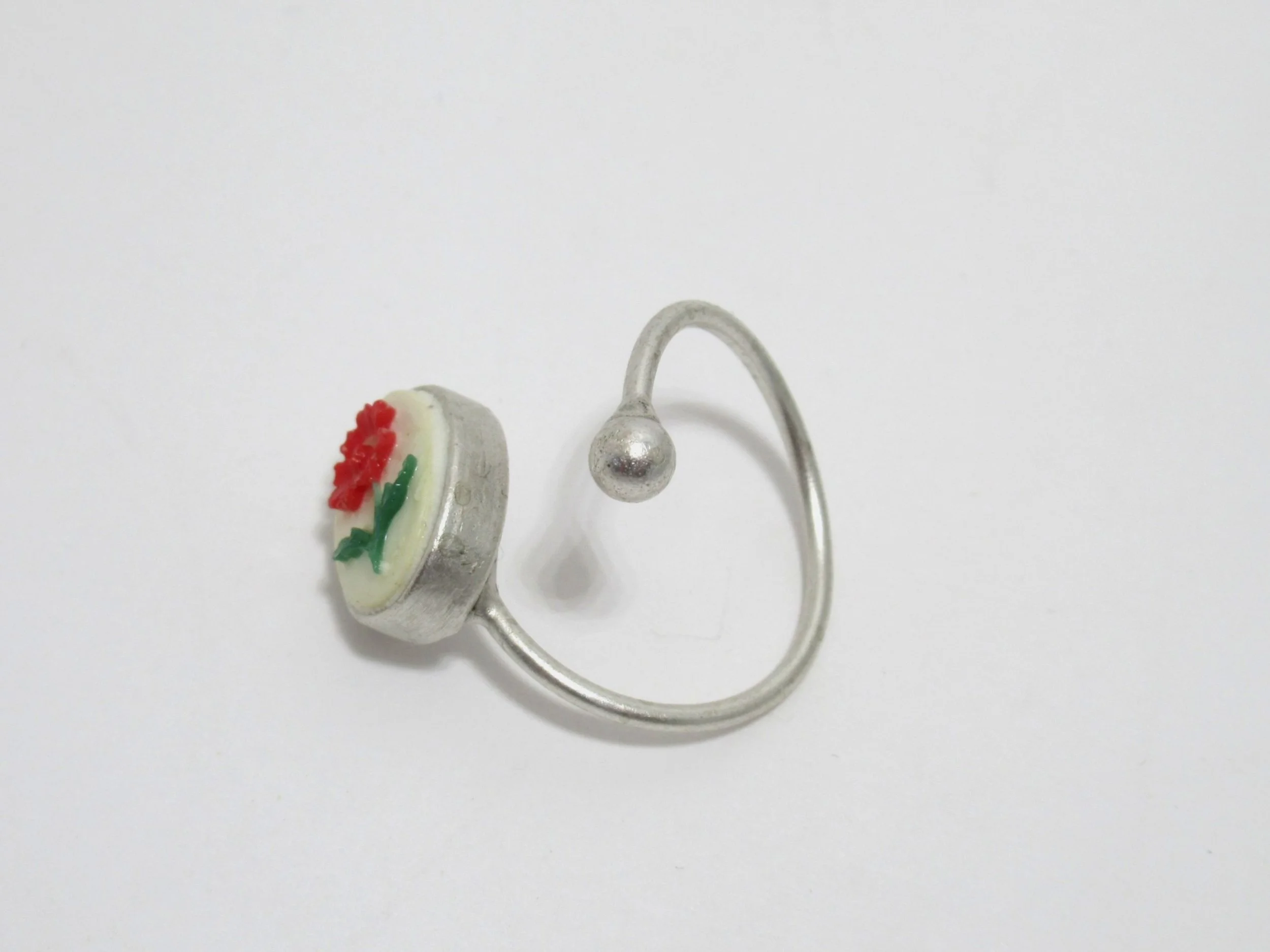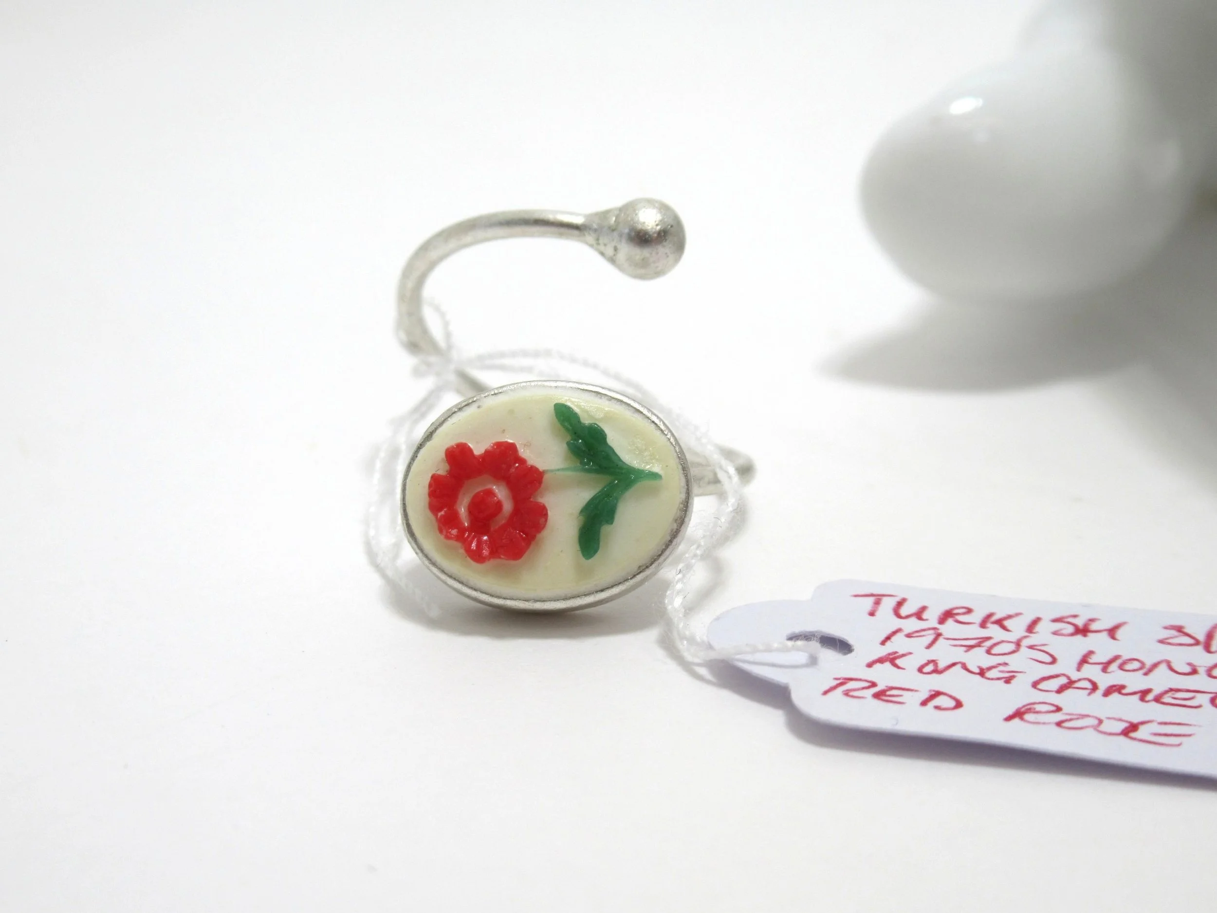 Handcrafted Unique Turkish Silver Rings Vintage Pink Yellow Flower Cameos.