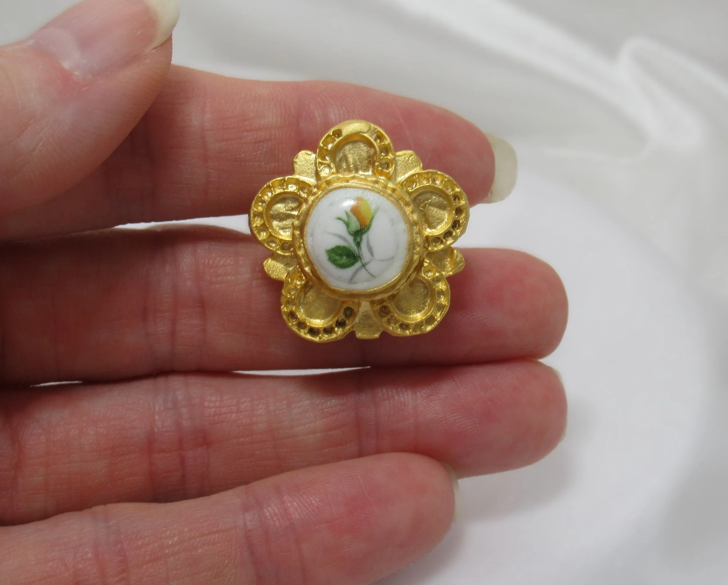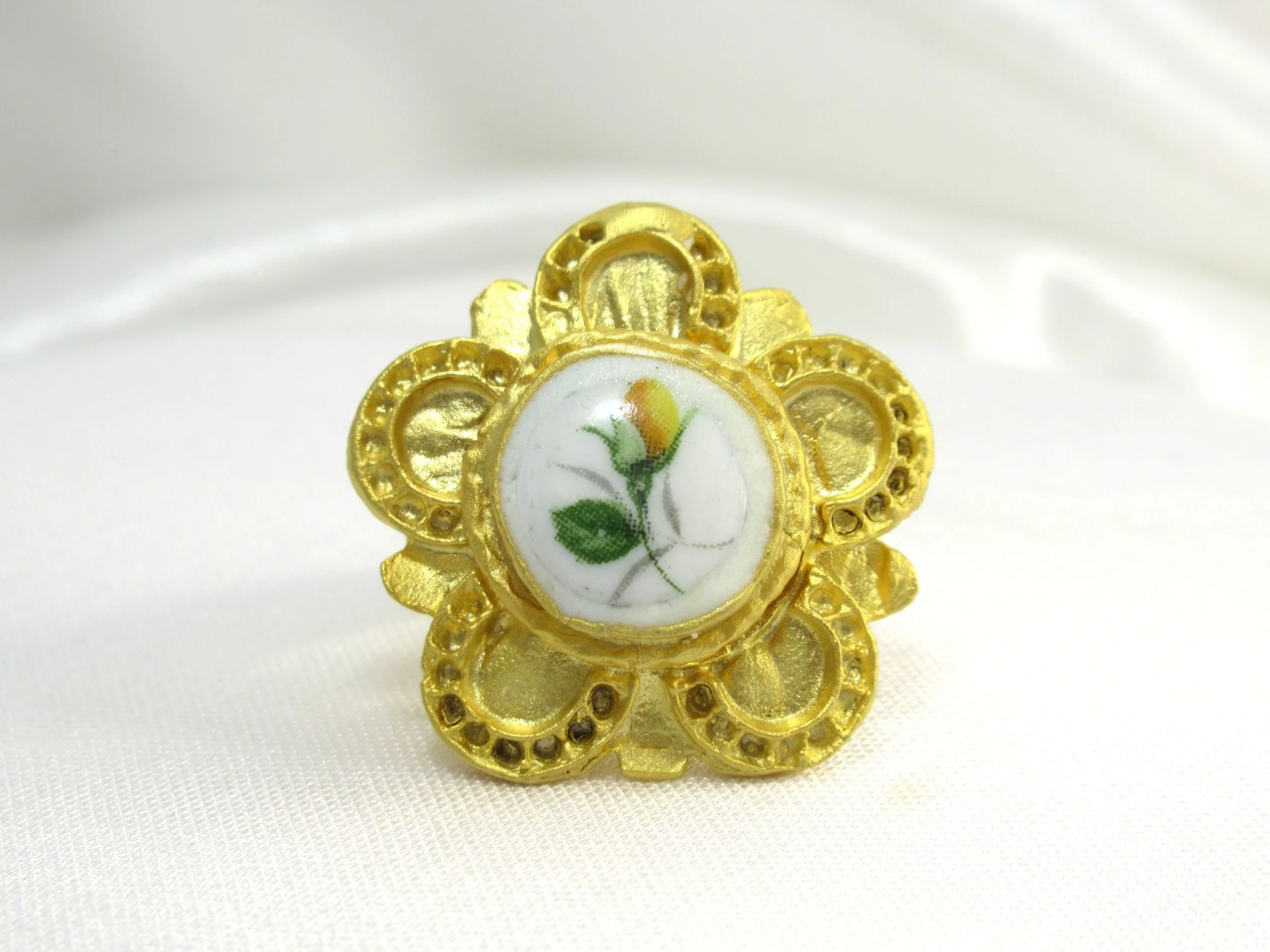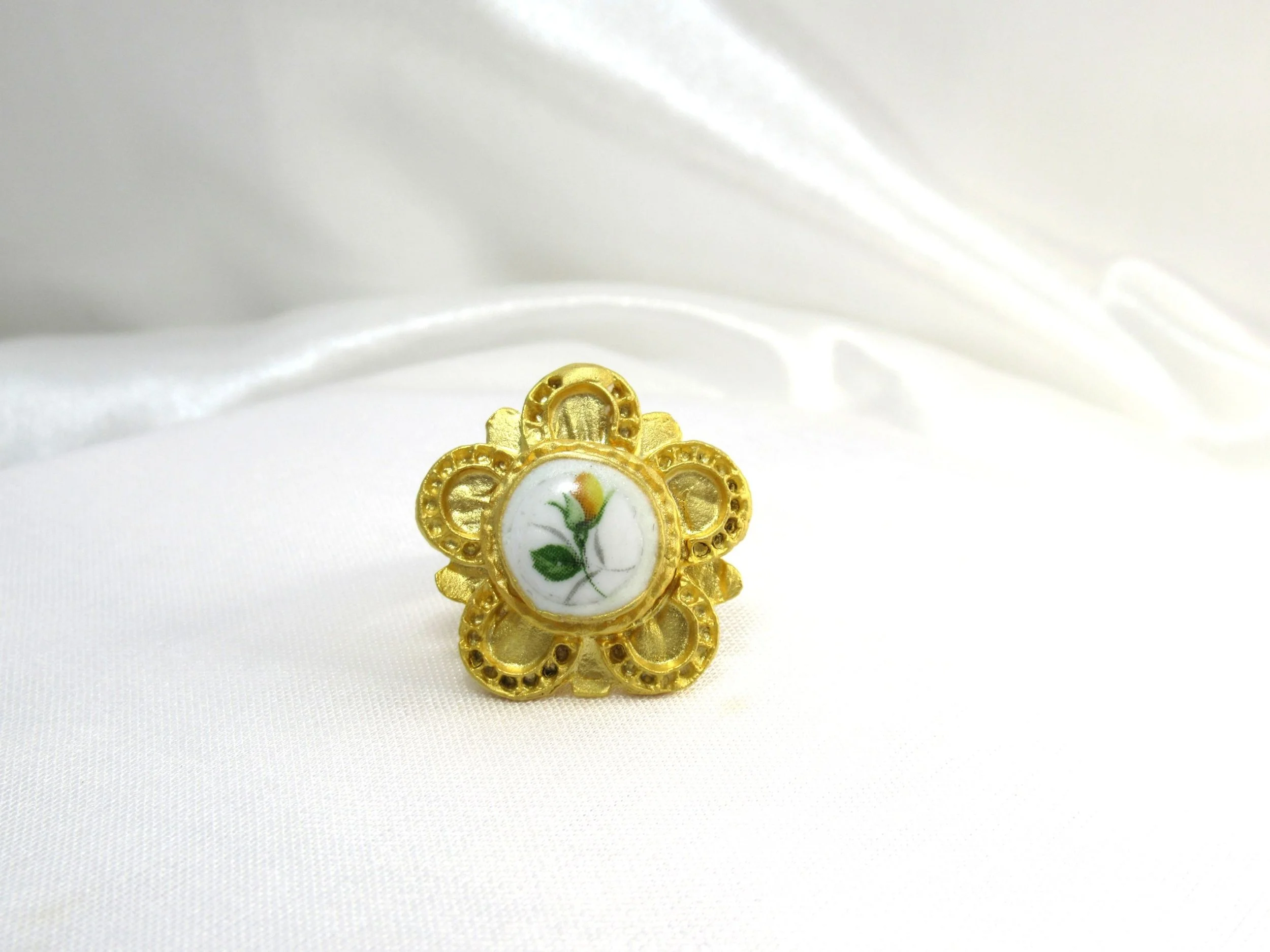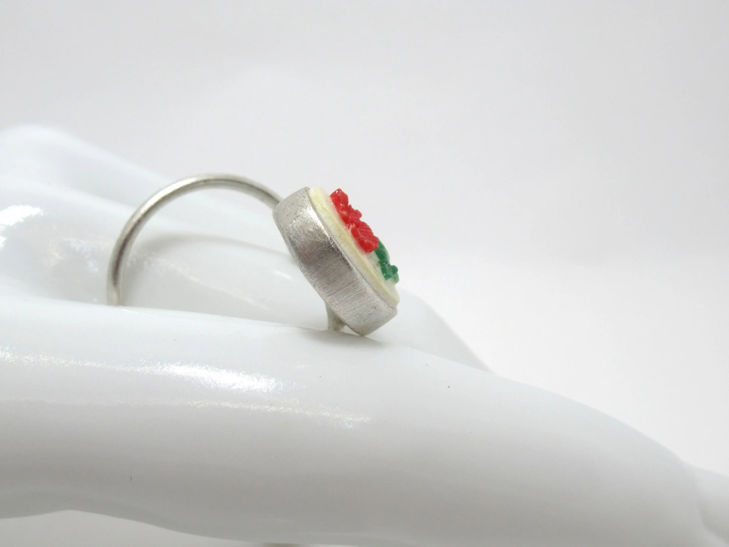 Handcrafted Unique Turkish Silver Rings Vintage Pink Yellow Flower Cameos.