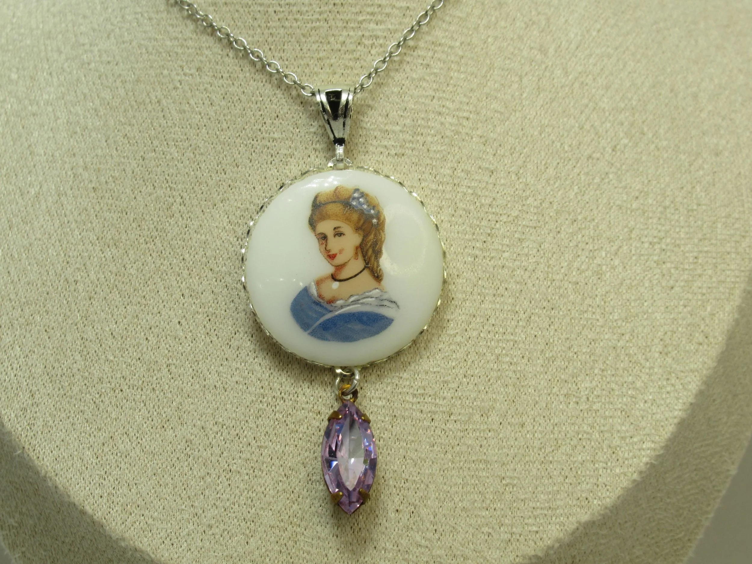 The pendant necklaces are new and unused, with a vintage cabochon.