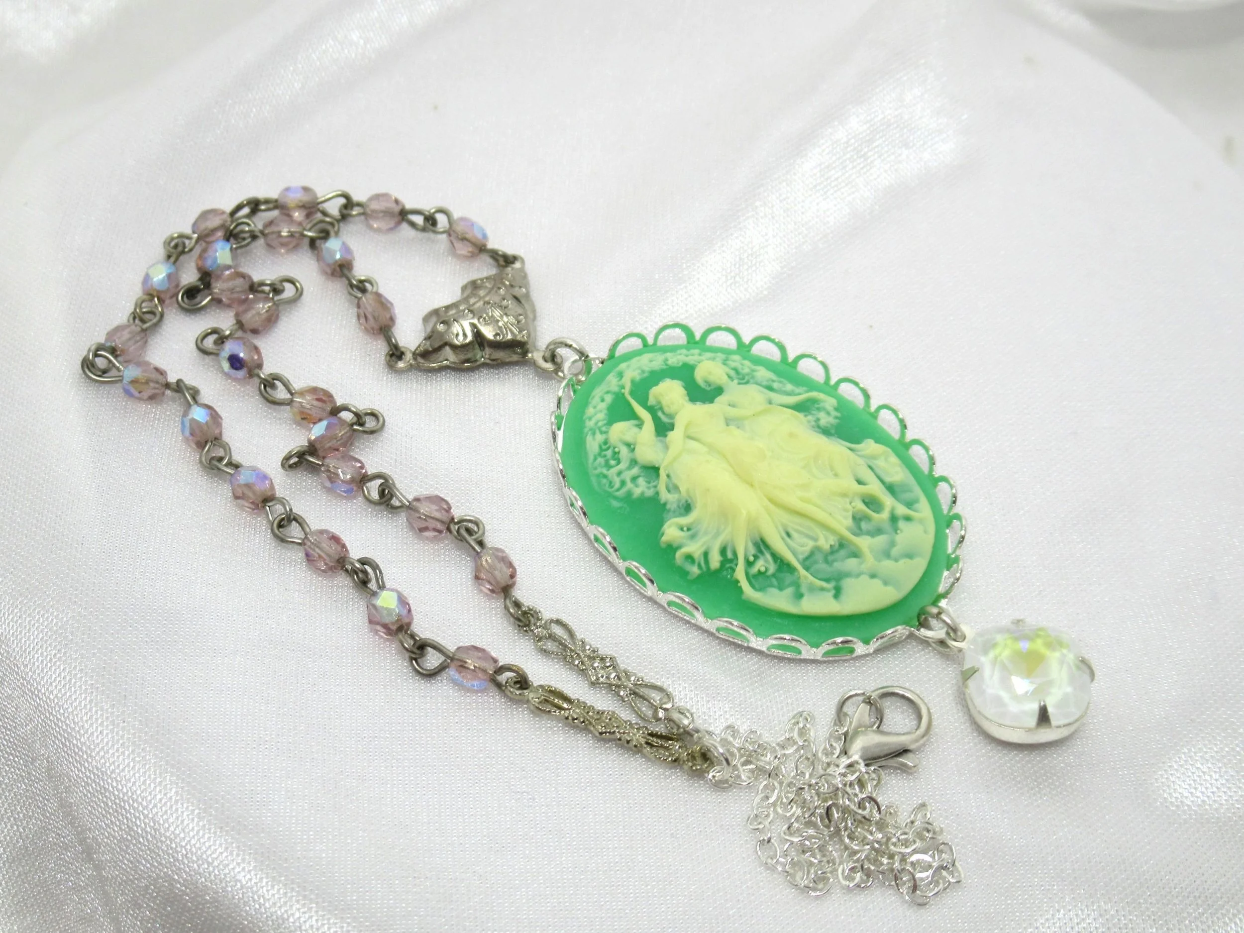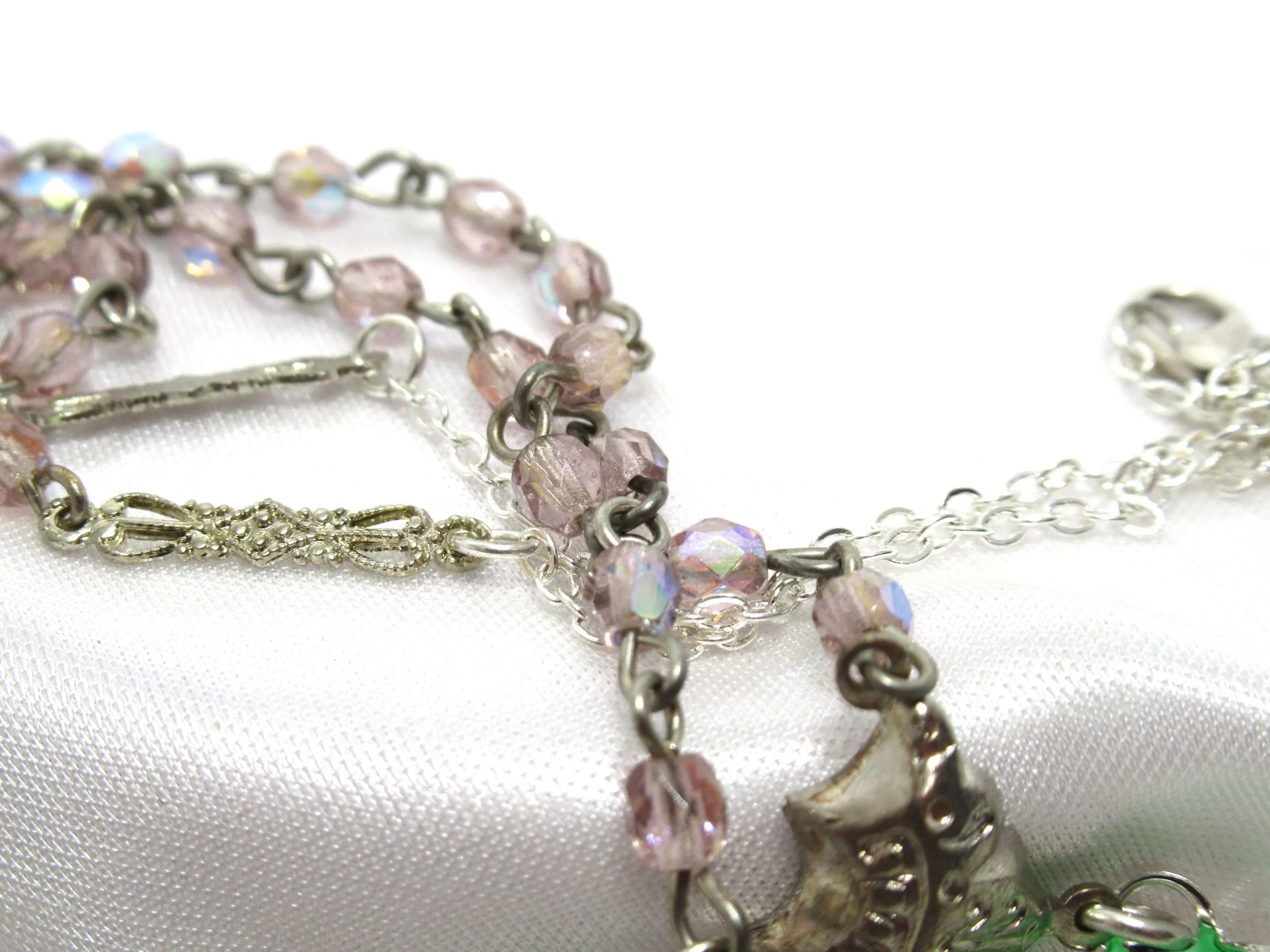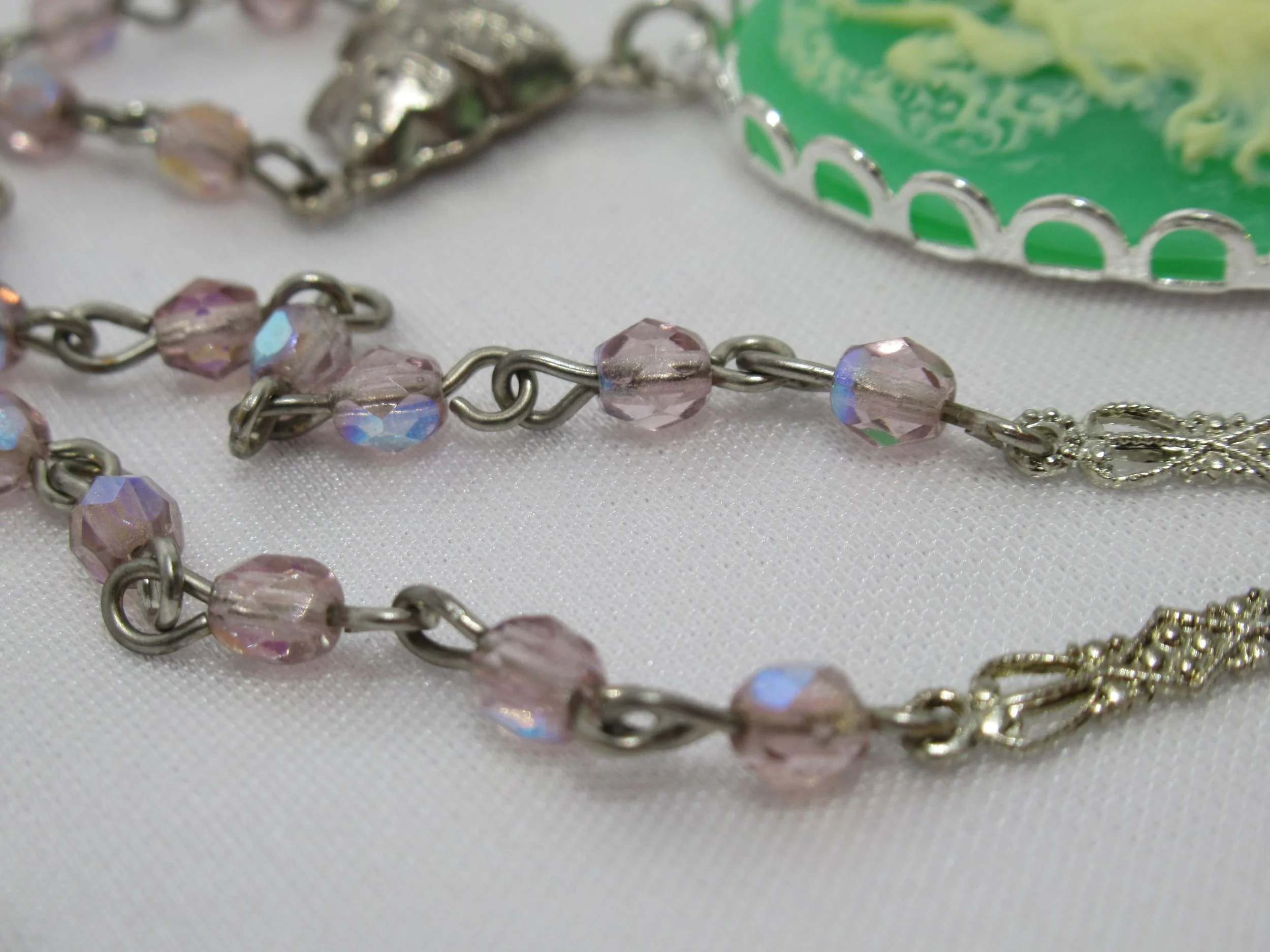 The pendant necklace is new and unused, with a vintage rose Quartz glass stone.