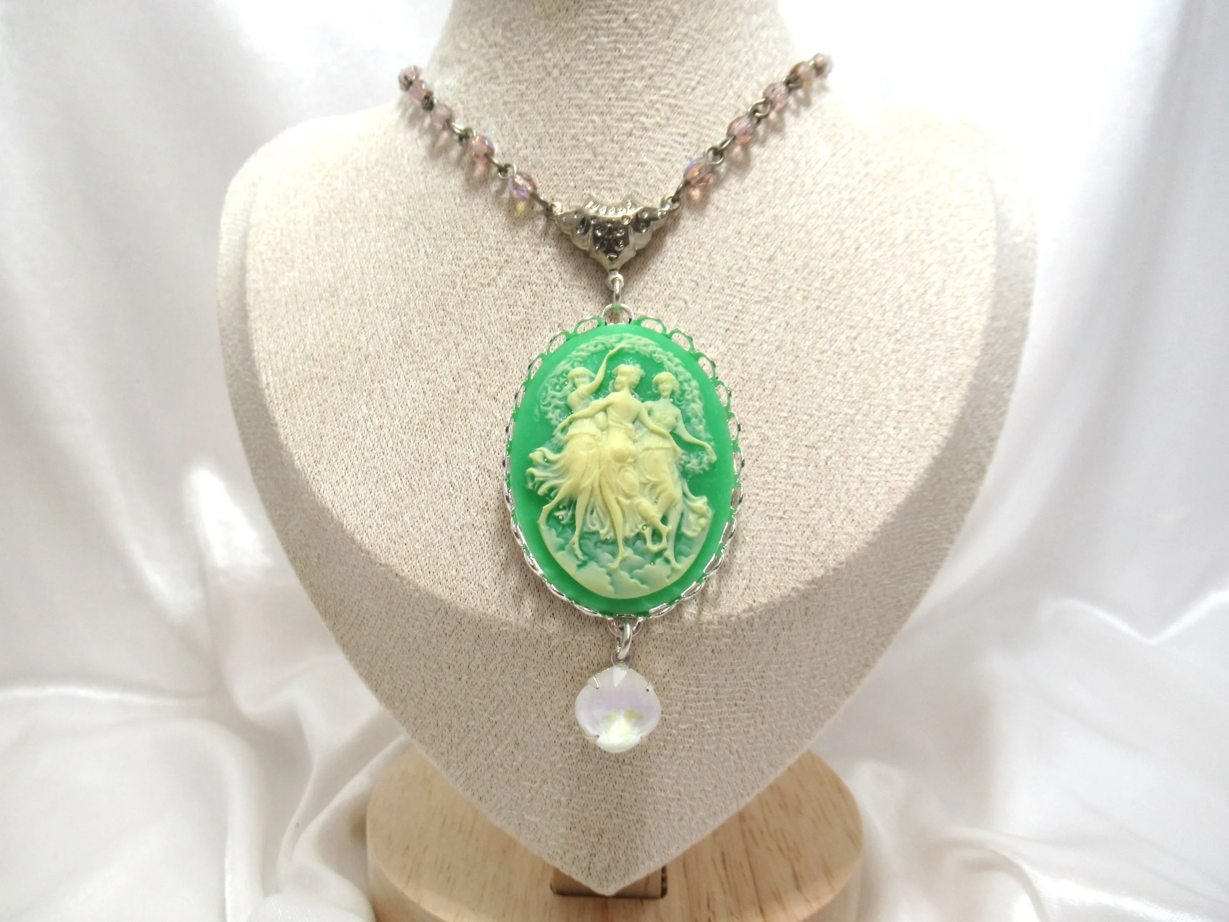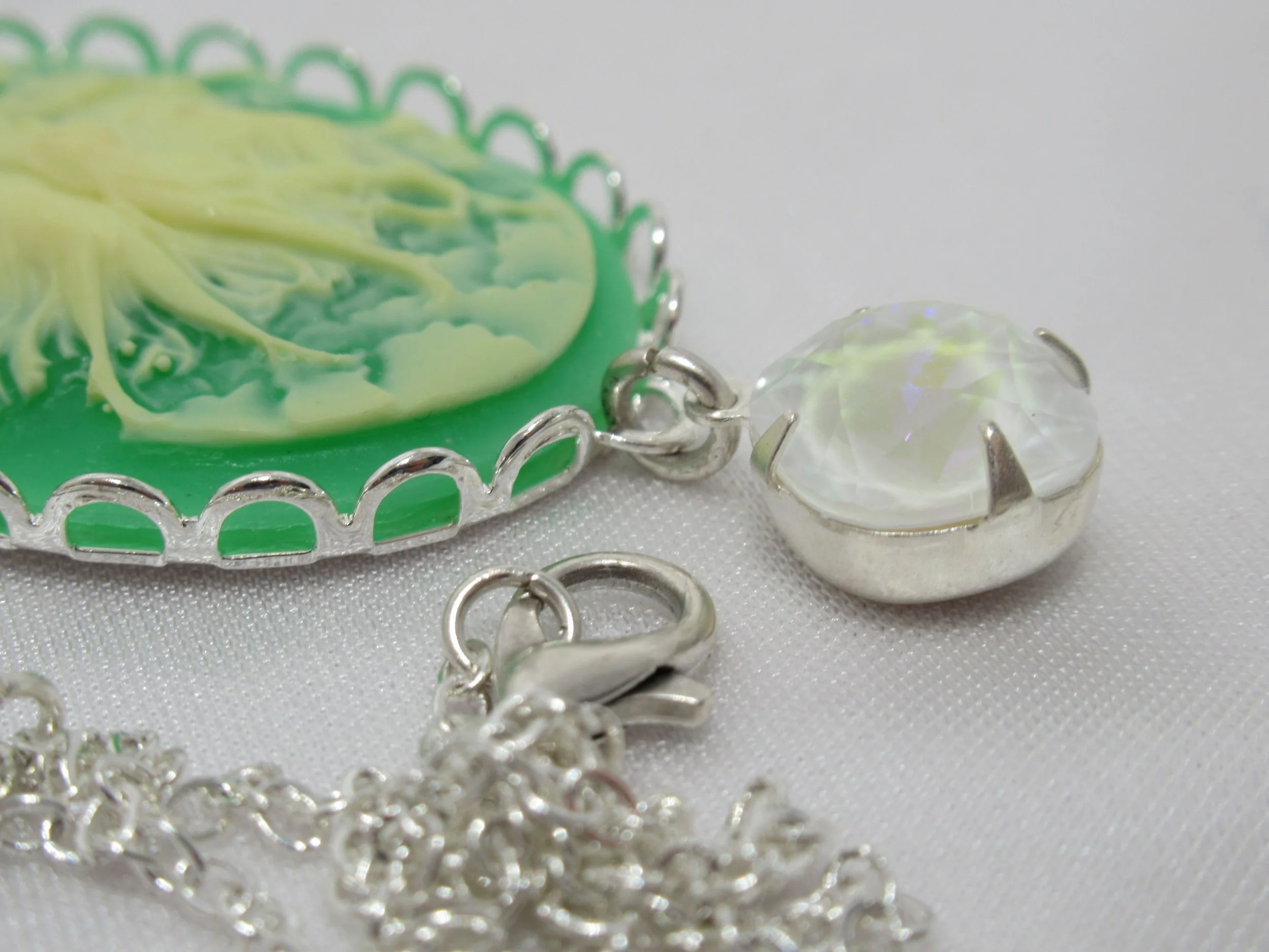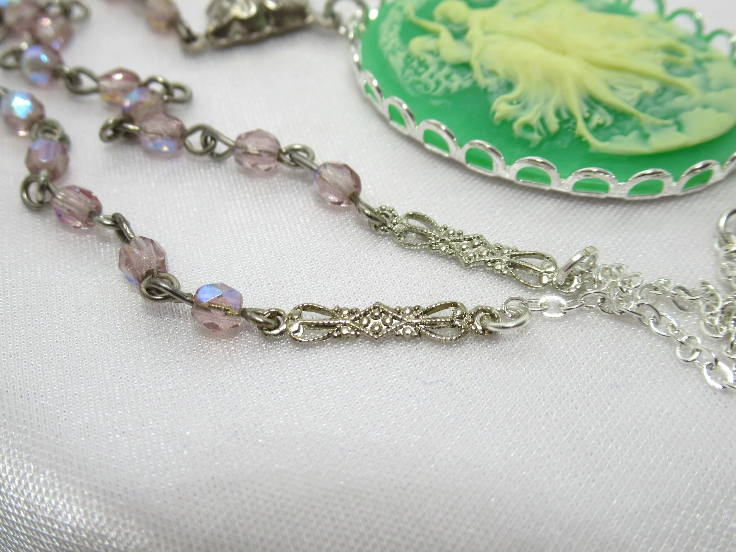 The pendant necklace is new and unused, with a vintage rose Quartz glass stone.