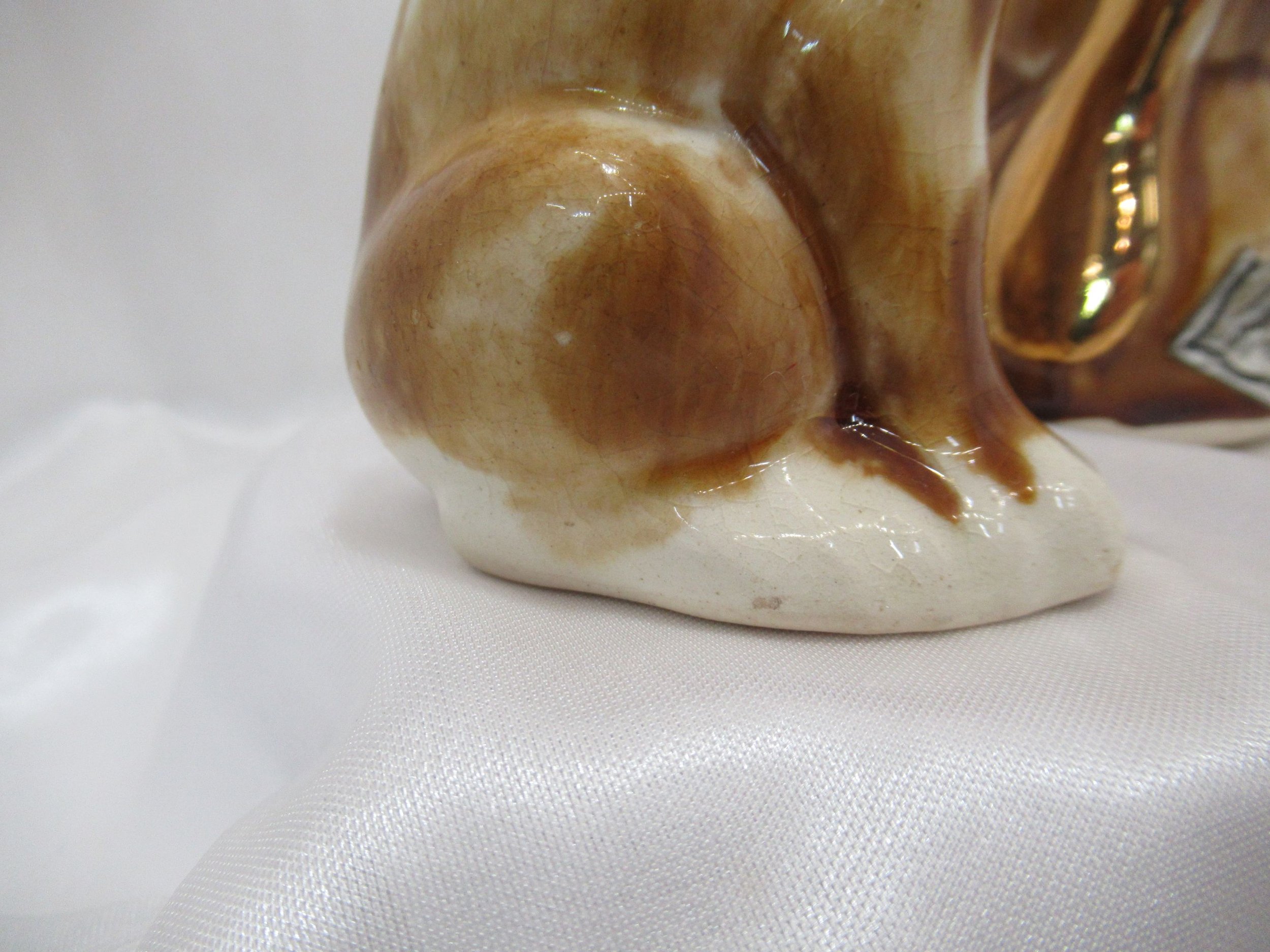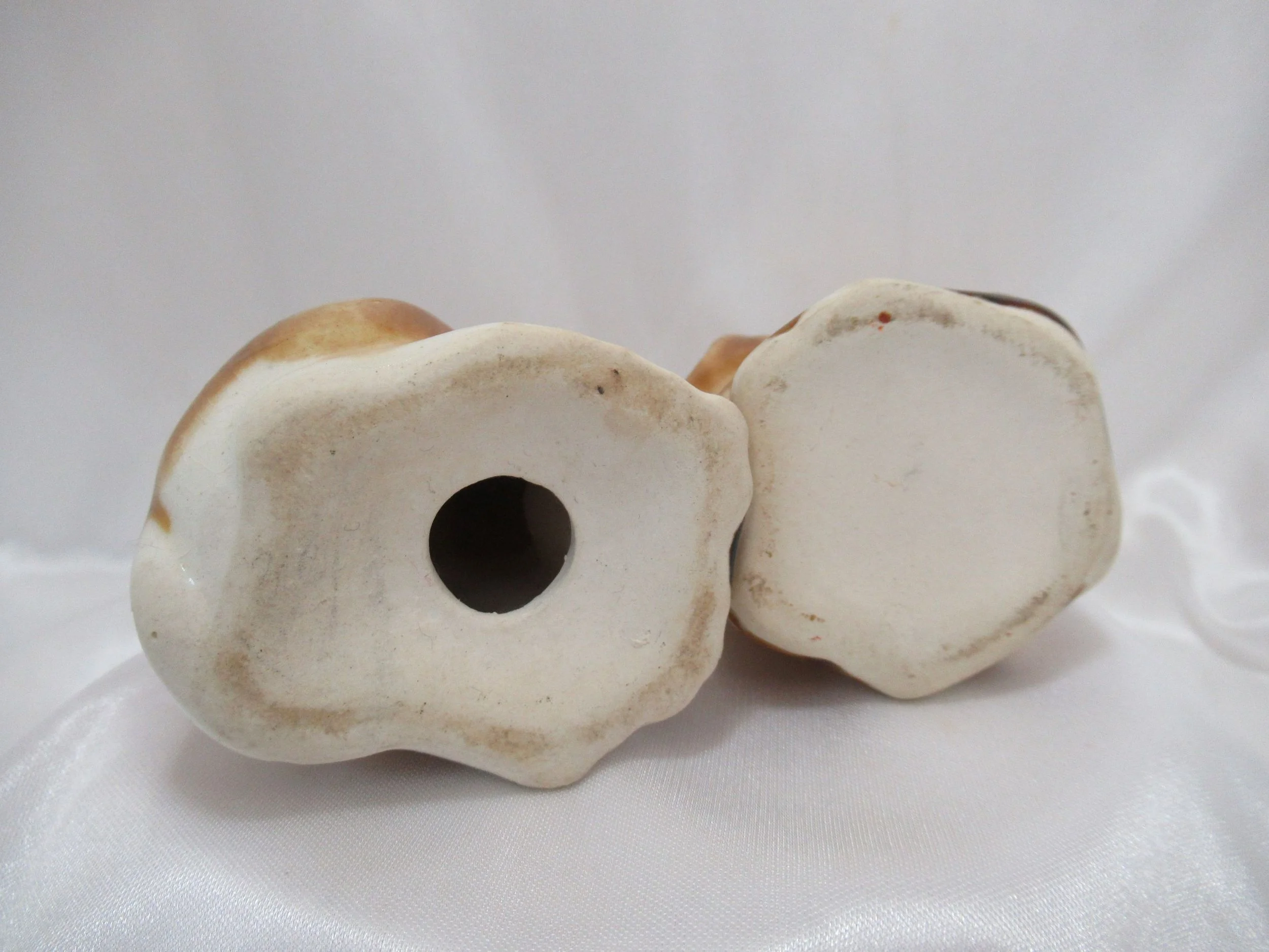 Beautifully detailed, these items have been hand-painted with colourful dark greys, olive greens, pinks, and blues and have a gloss finish. The trunks are upward-pointing to signify good fortune, and both have lovely detailed fine features. They make adorable mid-century home decor and lovely gifts for avid travellers, elephant lovers and for those who appreciate collectible vintage Japanese ceramics.