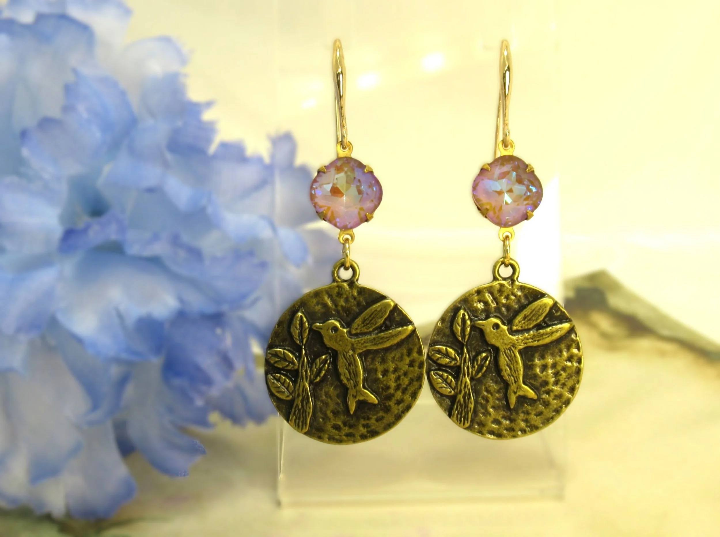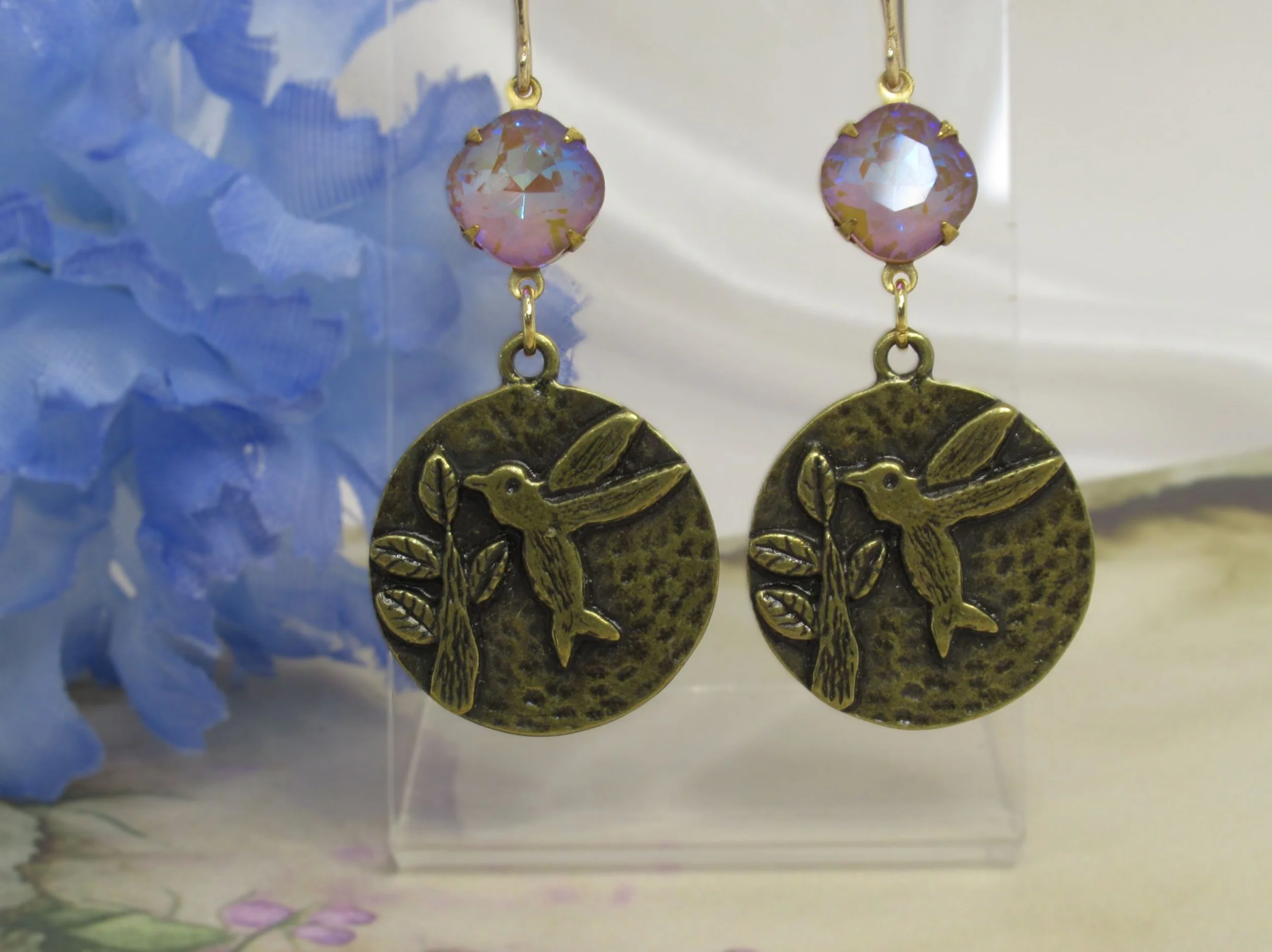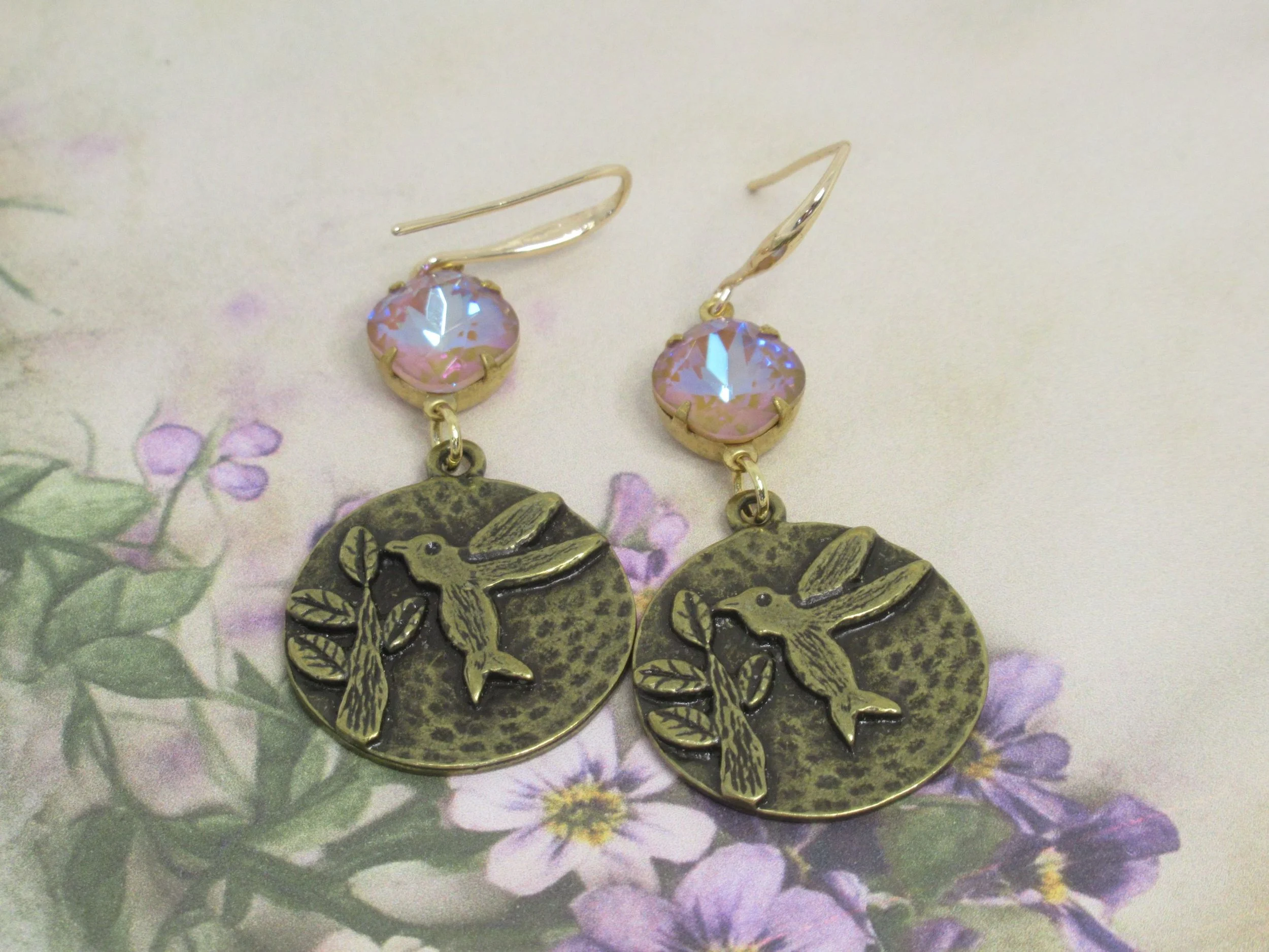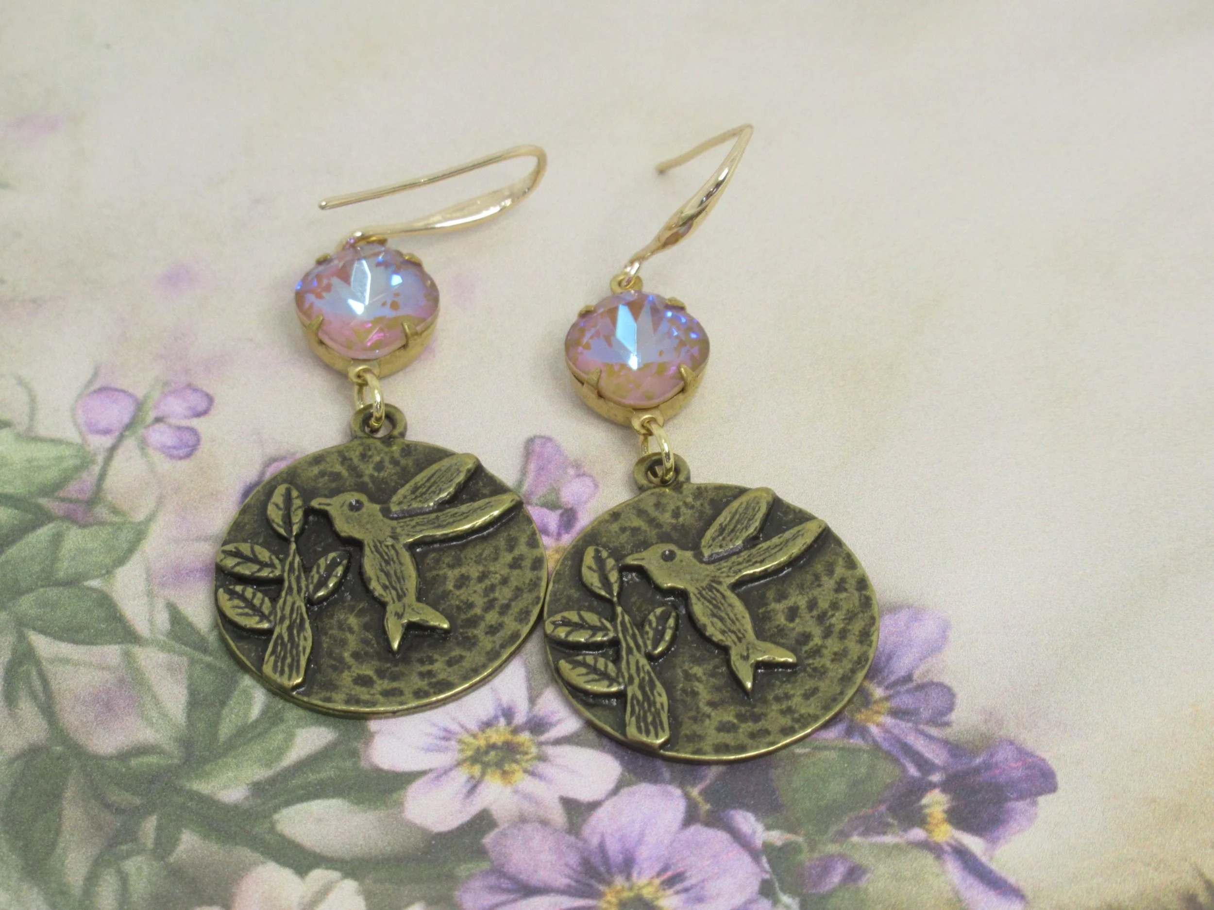 Handcrafted Victorian Design Rose & Austrian Opal Colour Crystal Earrings