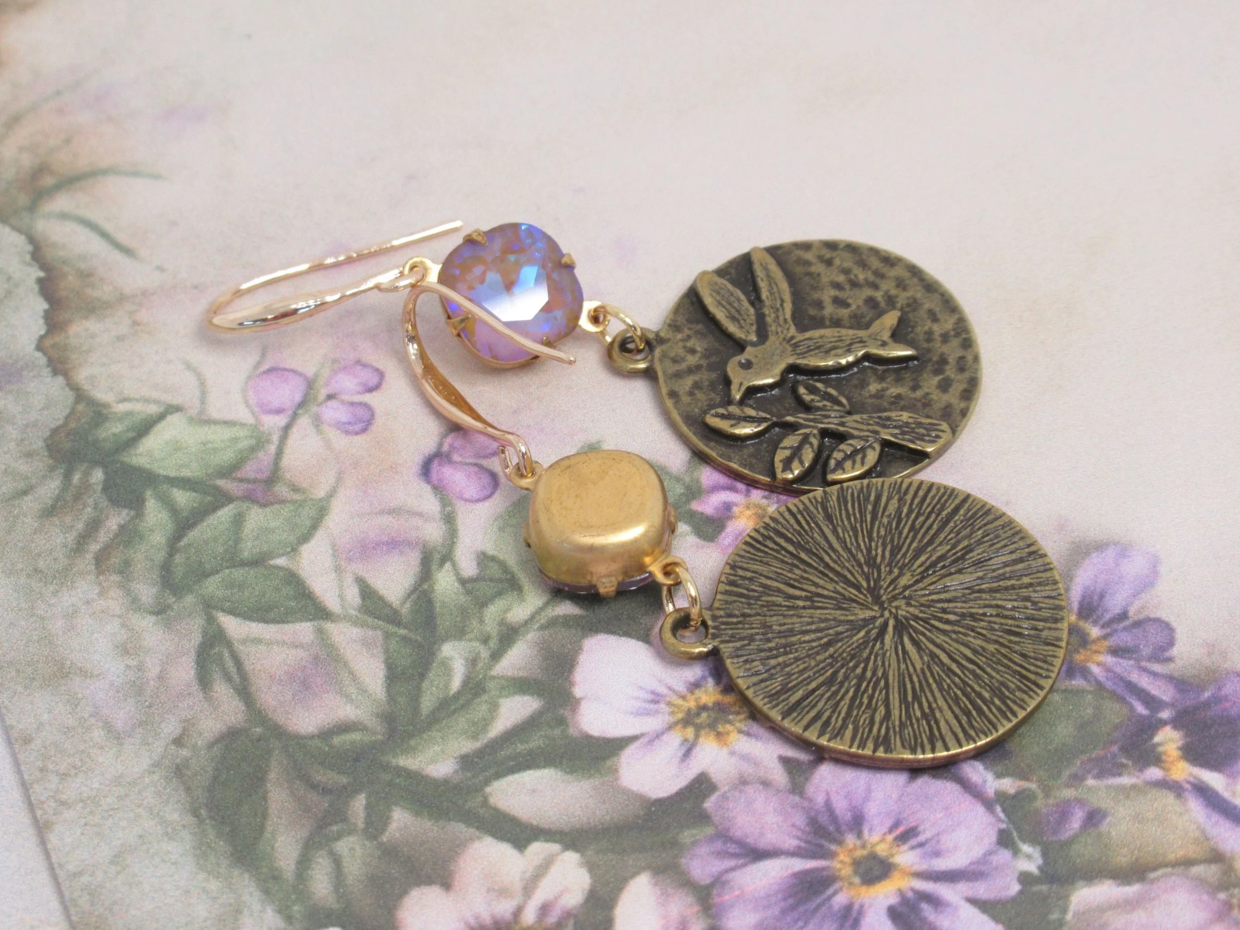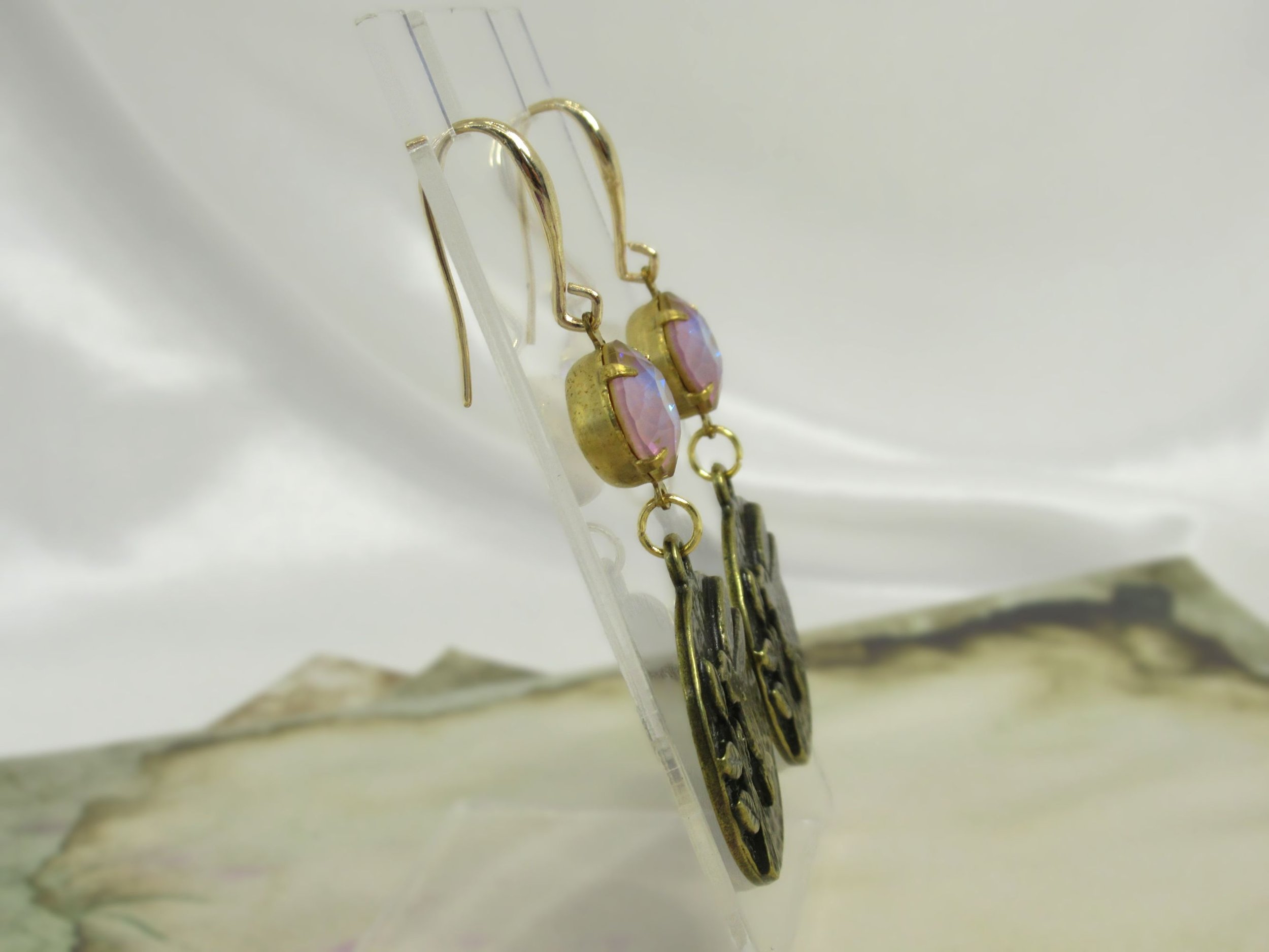 The earrings are new and unused, with vintage cameos and crystals.
